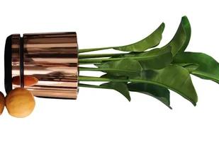 32 cm wzór ŁOSOSIOWY Doniczka z podstawką * nowoczesna elegancka różowe złoto * duża szeroka donica * styl glamour * wysoki lustrzany połysk metali..