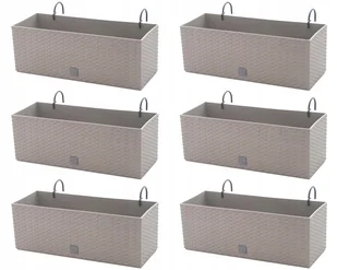 Doniczka balkonowa DRTC500 z uchwytami, 6 szt. Mocca Specyfikacja: długość - 51 cm szerokość - 19 cm wysokość - 18,5 cm pojemność - 17 l materiał - tworzywo ...