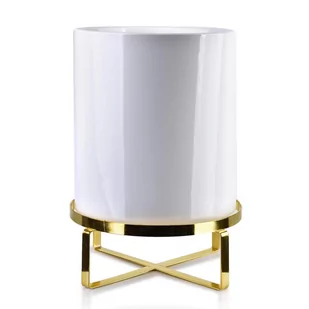 Ceramiczna doniczka umieszczona na metalowym stojaku. Idealnie sprawdzi się jako sposób na wyeksponowanie kwiatów i dekoracja do wnętrz urządzonych w stylu glamour. Nadaje się także na zewnątrz do ogrodu lub na taras. Osłonka umieszczona w widocznym miejscu doda pomieszczeniu elegancji i będzie stanowiła niebanalną ozdobę.