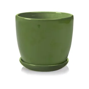 Donica ceramiczna z podstawkiem zielony ciemny 14 cm