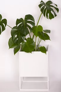 Duży, nowoczesny kwietnik metalowy z donicą, wykonany ze stali malowanej proszkowo, trwałej i odpornej. Każda donica przygotowywana jest ze szczególną dbałością o szczegóły takie jak jakość i precyzja spawu. Dokładnie wyszlifowane i zgrzanie naroża donicy to charakterystyczny znak tego wyrobu.