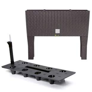 Donica skrzynia nogi system nawadniający 25x60x46 cm umbra Skrzynia donica ogrodowa na nóżkach+wkład nawadniający rattan w kolorze umbra. Donica wsparta na s...