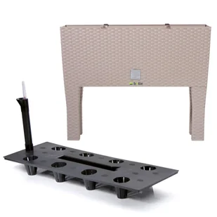 Donica skrzynia nogi system nawadniający 33x80x62 cm mocca Skrzynia donica ogrodowa na nóżkach+wkład nawadniający rattan w kolorze mocca. Donica wsparta na s...