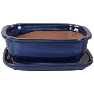 Donica szkliwiona Bonsai z podstawką 21,5 x 17 cm niebieski