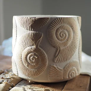Doniczka cementowa z muszlami- kremowo-beżowa, 16,5cm