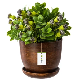 Doniczka ceramiczna 25x20 cm podstawka drewno brąz ciemny Ceramiczna doniczka o klasycznej formie przypadnie do gustu nawet najbardziej wyrafinowanym sympaty...
