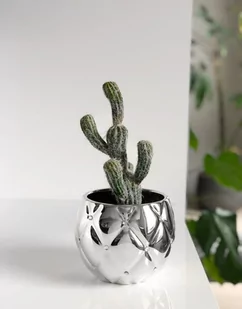 Przedmiotem sprzedaży jest doniczka - osłonka ceramiczna. Nowoczesna doniczka idealnie wpasuje się w każde wnętrze. Wykonana z wysokiej jakości ceramiki wygląda bardzo elegancko i stylowo. Wymiary: wysokość 13 cm średnica doniczki 13 cm otwór doniczki 11,7 cm średnica podstawy 9 cm szerokość maksymalna 16cm kolor srebrny cena za jedna sztukę Aukcja dotyczy wyłącznie doniczki bez dodatków i kwiatów widocznych na poniższym zdjęciu. Zapraszam na pozostałe aukcje gdzie dostępne są inne wzory oraz kolory doniczek.