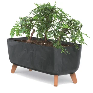 Doniczka skrzynka nóżki wkład 39 cm antracyt beton Efektowna doniczka wykonana z wysokiej jakości tworzywa sztucznego, o niebanalnym wyglądzie imitującym bet...