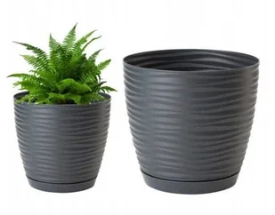 Doniczka z podstawką antracyt 19x17,3cm plastikowa