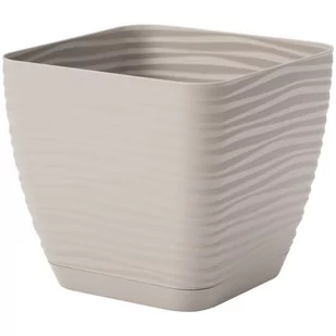 Elegancka doniczka Sahara Petit o kwadratowym kształcie, w niepowtarzalnym wzorze dłuta imitującego pofalowane piaski pustyni, marki Form Plastic będzie pięk...