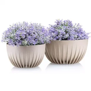 Zestaw doniczek w kształcie mis z kolekcji Stripped Eco Coffee to połączenie nowoczesnego designu z funkcjonalnością. Tego rodzaju donice będą eleganckim i praktycznym sposobem na ozdobienie wnętrza domu. Pięknie prezentować się będą na tarasie, balkonie czy ogrodzie, gdyż są odporne na zróżnicowane warunki atmosferyczne i promienie UV.