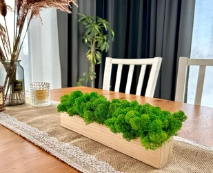 Oryginalna dekoracja do domu Drewniana podstawka doniczka wypełniona mchem chrobotkiem w pięknym zielonym kolorze Wymiary 30cm x 5cm Mech jest zaimpregnowany i nie wymaga żadnej pi ...