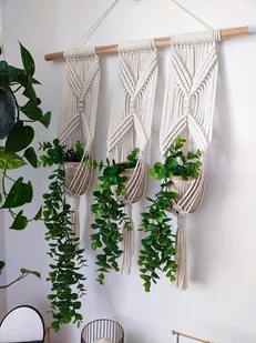Kwietnik makrama na 3 doniczki, boho dekoracje