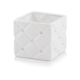 Osłonka ceramiczna kwadrat glamour biała 14 cm