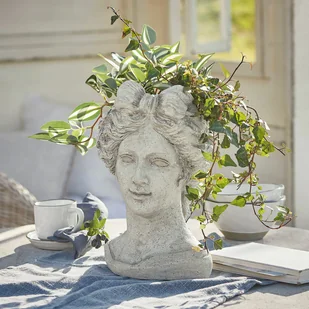 Zmień swój ogród w elegancki park. Na przykład za pomocą tej oryginalnej osłonki, która przypomina rzeźbę rodem z mitologii greckiej. Ręcznie wykonana z żywicy polimerowej, ma zwodniczo realistyczny wyglądu naturalnego kamienia. Uszlachetniono ją antycznym wykończeniem, które podkreśla jej nostalgiczny charakter. Ten dodatek będzie wyglądać wyjątkowo pięknie na kwietniku lub na murku na patio – ozdobiony paprociami lub lawendą stanie się wizualną atrakcją.