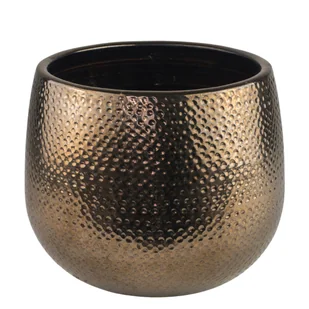 Osłonka do doniczki marki Ceramik w złotym kolorze z serii Gabriel to elegancki i efektowny dodatek do wnętrz. Wykonana z ceramiki, ma okrągły kształt i szerokość 14 cm. Jej błyszczące wykończenie i subtelny wzór w mini kropeczki na całej powierzchni dodają luksusowego charakteru. Złoty odcień wnosi odrobinę blasku i wyrafinowania, a odporność na działanie promieni UV zapewnia trwałość i estetyczny wygląd na długi czas. Choć osłonka nie jest mrozoodporna, doskonale sprawdzi się wewnątrz, wprowadzając do przestrzeni nowoczesny i elegancki akcent.