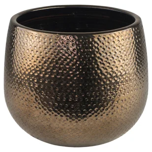 Osłonka do doniczki marki Ceramik z serii Gabriel to elegancka propozycja, która wprowadza odrobinę luksusu do wnętrz. Wykonana z ceramiki, ma okrągły kształt i szerokość 17,5 cm. Jej złoty kolor w połączeniu z błyszczącym wykończeniem oraz wzorem w mini kropeczki nadaje jej nowoczesny i wyrafinowany charakter. Odporność na działanie promieni UV zapewnia trwałość i estetyczny wygląd przez długi czas. Choć osłonka nie jest mrozoodporna, doskonale sprawdzi się wewnątrz, wzbogacając przestrzeń o elegancki akcent.