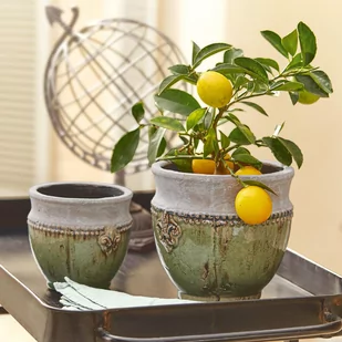 Autentyczny antyczny design z ornamentem w lilie. Gustowny kontrast kolorystyczny. Ręcznie wykańczana powierzchnia sprawia, że każdy egzemplarz jest wyjątkowy. Cudownie autentyczny antyczny design sprawia, że ten zestaw jest absolutnym unikatem. Ręcznie wykonana powierzchnia donic zachwyca zwodniczo autentycznymi śladami mijającego czasu oraz drobnymi nierównościami.