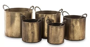 Osłonka Kpl. 5 Szt. . Materiał: metal. Rozmiar: 30x31,5x27,5 27,5x28,5x24 25x2. Kolor: złoty. Dekoracje z Kolekcji Metale Antyk mają duszę, a każdy prz. . . Podstawowe dane: Materiał: metal Kolor: