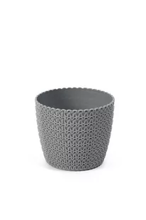 Osłonka szara Jersey 16 cm jest stylową doniczką z nietuzinkowym wzorem imitującym plecionkę. Wykonana z wysokiej jakości materiału, sprawdzi się zarówno we wnętrzach oraz w ogrodach i na tarasach, świetnie nadaje się do hodowli każdego rodzaju roślin.