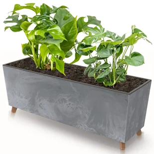 Skrzynka balkonowa nóżki wkład 77x30cm szary Efektowna doniczka wykonana z wysokiej jakości tworzywa sztucznego, o niebanalnym wyglądzie imitującym beton jes...