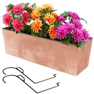 Skrzynka balkonowa uchwyty 58x19 cm terakota Elegancki charakterystyczny styl roztartego betonu. Doskonałe uzupełnienie zewnętrznych kompozycji. Idealnie wko...