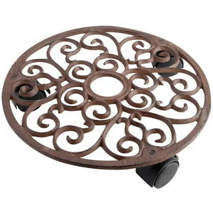Okrągły wózek na donicę, wykonany z wytrzymałego żeliwa w rustykalnym stylu, wymiary: 29,3 x h6,6 cm