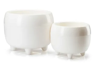 Kremowe doniczki na nóżkach o wyjątkowym designie, trwałe tworzywo sztuczne, odporne na zabrudzenia, 23xh18,3 cm oraz 30xh23,8 cm