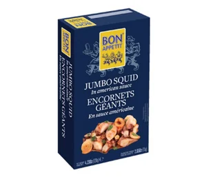 Składniki: kałamarnice (60%), olej słonecznikowy (20%), pomidory (15%), cebula (3%), przyprawy, sól, stabilizator: E-452.