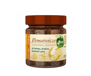 Pomarańcz z cynamonem i goździkami 4tea, zawiera miąższ oraz została wyprodukowana z 70 g owoców na 100 g produktu. Ten smak kojarzy się z aromatyczną gorącą herbatą albo grzańcem ale sprawdź też jak dobrze smakuje z innymi napojami. Z pomarańczowym 4tea dodasz aromatycznego akcentu do wody, lemoniady, piwa czy drinków. Wypróbuj i znajdź swój ulubiony mix.