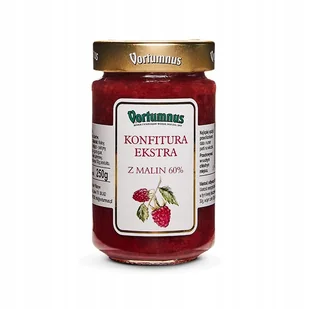 Vortumnus Konfitura Ekstra z malin 60% 250g Polskie maliny gotowane z odrobiną cukru, przygotowane według tradycyjnej, domowej receptury. Konfiturę sporządzono z 60g owoców na 100g produktu. Składniki: maliny, cukier, woda, substancja żelująca – pektyny, substancja zagęszczająca – guma gaur, regulator kwasowości – kwas cytrynowy