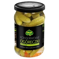 SKŁADNIKI ogórki* 60 %,zalewa* 38,5 % (woda, cukier trzcinowy*,ocet spirytusowy*), przyprawy* 0,5 % (liść laurowy*, ziele angielskie*, koper*, gorczyca*), sól kłodawska 1 % (*certyfikowany składnik ekologiczny) OPIS Ogórki robione są według tradycyjnej receptury - doskonałą jędrność i tradycyjny, słodko-kwaśny smak, zawdzięczają octowej marynacie, pełnej aromatycznych przypraw. Ogórki DELUXE to specjalna odmiana wyselekcjonowanych ogórków o mniejszym rozmiarze i dużej chrupkości - idealna do sałatek, zup lub na przystawkę.
