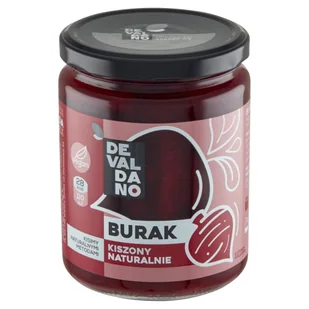 Devaldano kisimy naturalnymi metodami produkt wegański Burak kiszony. Produkt pasteryzowany.