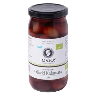 Oliwki BIO kalamata całe marki IORGOS to ekologiczne, całe oliwki kalamata, dostępne w opakowaniu o masie netto 360 gramów. Masa odsączonych oliwek wynosi 220 gramów.