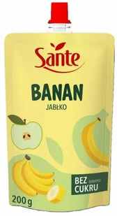 SANTE MUS 100% BANAN JABŁKO 200G KARTON ZBIORCZY ZAWIERA - 10 SZTUK SKŁADNIKI: przecier bananowy (51%), przecier jabłkowy (49%) Przechowywać w suchym i chłod...