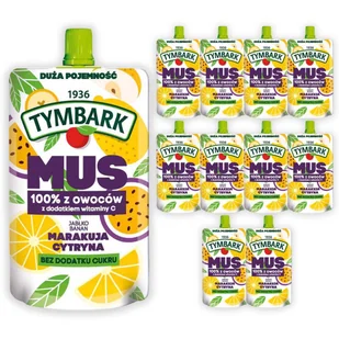 Tymbark Mus 100 % z owoców jabłko banan marakuja cytryna 200 g x 10 sztuk Tymbark Mus 100 % z owoców marakuja 200 g 10 sztuk Tymbark Mus 100 % z owoców marakuja cytryna 200 g Mus 100 % z owoców z dodatkiem witaminy C. Przecierowy, pasteryzowany. Bez dodatku cukrów. Zawiera naturalnie występujące cukry. Źródło witaminy C i błonnika.