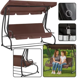 Huśtawka Czteroosobowa Ogrodowa Bujana Daszek Wolnostojąca Brązowa