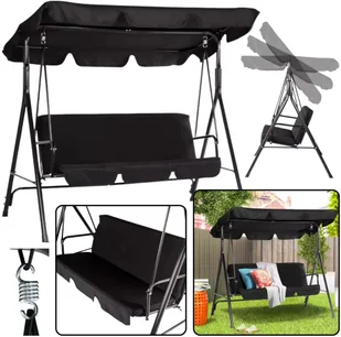 Huśtawka Trzyosobowa Ogrodowa Bujana Poduszki Materac Czarna