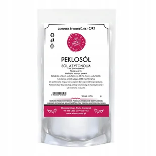 Peklosól, sól do peklowania peklowa peklująca 5kg Peklosól, sól do peklowania peklowa peklująca 5kg Peklosól do peklowania Peklosól do peklowania mięsa, nie nadaje się do bezpośredniego spożycia. Peklosól służy do produkcji zalewy solankowej, do nastrzykiwania lub wcierania na sucho. Do solenia i peklowania nadaje się mięso wszystkich rodzajów zwierząt rzeźnych. Najczęściej pekluje się mięso wieprzowe, na które peklowanie wpływa uszlachetniająco, nadając mu specyficzną barwę, smak i zapach. Kraj pochodzenia Polska / Niemcy Skład: