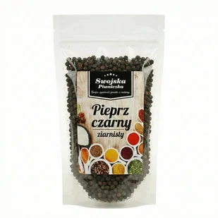 Pieprz czarny ziarno - Przyprawa powszechnie stosowana do zup, mięs, wędlin, nadaje się do przyprawiania surówek warzywnych, dodatkowo wykazuje działanie pobudzające do pracy układ trawienny. MASA NETTO: Masa Netto: 500g SKŁADNIKI: ziarno pieprzu czarnego KRAJ POCHODZENIA: