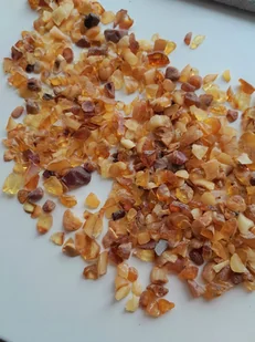 Bursztyn na nalewkę naturalny bałtycki 50g na 0,5l BURSZTYN BAŁTYCKI NA NALEWKĘ produkcyjny ,czysty i naturalny waga : 50g Jak przygotować nalewkę bursztynową? Około 50 gramów sieczki bursztynu należy wsypać na sitko, przepłukać ciepłą lub zimną wodą (w wodzie gorącej bursztyn traci swoje właściwości) i umieścić w butelce. Bursztyn zalewamy 0,5l alkoholem (najlepiej białą wódką), po czym odstawiamy na 2 tygodnie w ciepłe, zaciemnione miejsce, ale co dwa dni mieszamy. Po dwóch tygodniach zlewamy tak powstałą nalewkę do innego naczynia i używamy wg potrzeby. Na co jest dobra nalewka z bursztynu? Nalewka z bursztynu posiada silne właściwości przeciwzapalne i przeciwbólowe wobec tego często używana jest w celu złagodzenia bólu mięśni oraz kości.