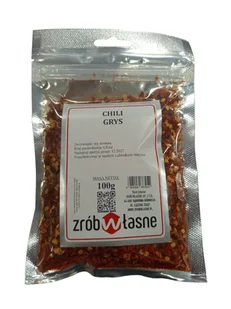 Chili Grys to suszone i rozdrobnione papryczki chili (często o wielkości ok. 3x3 mm), charakteryzujące się bardzo intensywnym, ostrym smakiem i wyrazistym ar...