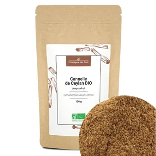 Ekologiczny cynamon cejloński mielony pochodzi ze Sri Lanki lub Madagaskaru, słynących z produkcji najlepszej jakości cynamonu cejlońskiego. Mielony cynamon cejloński pozyskiwany jest z kory drzewa cynamonowego, którą delikatnie się usuwa i ręcznie zwija. Kawałki kory są następnie łączone i pozostawiane do wyschnięcia. Cynamon cejloński wprowadza do potraw ciepłe, drzewne smaki i wzmacnia odczuwanie słodyczy. GWARANCJE JAKOŚCI Certyfikowany przez Ecocert (FR-BIO-01) Analiza identyfikowalności i jakości każdej wyprodukowanej partii Nazwa łacińska:
