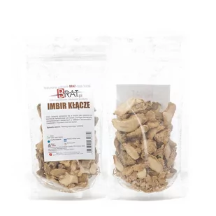 Imbir kłącze 100g PRODUKT NATURALNY, WYSOKIEJ JAKOŚCI Produkt pakowany jest w opakowanie typu "doypack" ze struną co pozwala na zachowanie długiej świeżości, gdyż można takie opakowanie wielokrotnie otwierać i zamykać a samo opakowanie jest trwałe co jest istotne podczas transportu. Imbir kłącze wieloletnie uprawiany w Azji, Afryce, Australii i na Karaibach. Ma bardzo charakterystyczny intensywny aromat. Substancje żywicowe m. in. zinferon, gingerol, odpowiadają za palący, lekko gorzki smak.