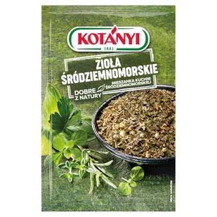 Intensywnie aromatyczna kompozycja ziół powszechnie spotykanych nad basenem Morza Śródziemnego. Ta znakomita mieszanka ziół Kotányi doda potrawom wyjątkowego smaku.