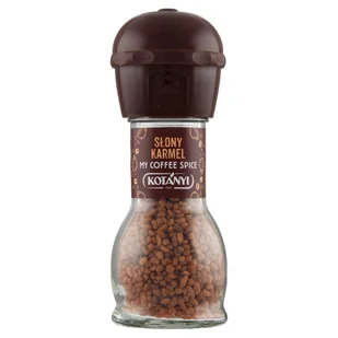 KOTANYI SŁONY KARMEL POSYPAK MŁYNEK 65G to posypka do kawy i deserów składająca się z gruboziarnistego cukru karmelowego z dodatkiem soli. Coś specjalnego dla miłośników łączenia słonego i słodkiego smaku – mieszanka przypraw w młynku wspaniale wzbogaci smak i aromat ulubionej kawy oraz nada wyjątkowego charakteru słodkim daniom. Słony karmel to popularny dodatek do deserów i wspaniałej aromatycznej kawy Latte. Posypka słony karmel odmieni smak kawy . . . . słony i słodki.