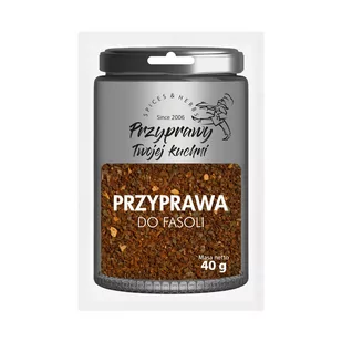 Przyprawa do fasoli Przyprawy Twojej kuchni Przyprawa do fasoli Przyprawy Twojej kuchni Przyprawa do dan z fasolą nadaje potrawom ciekawy smak i aromat. Należy ją dodać pod koniec przyrządzania potraw. Składniki: sól, cząber, kolendra, czosnek, cukier, majeranek, kminek, papryka ostra, cebula, ziele angielskie, lubczyk, pomidor, liść laurowy, pasternak, marchew, ekstrakt z papryki. Kraj pochodzenia: Wyprodukowano w Polsce Przechowywanie: