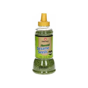 Ziarna Sezamu o Smaku Wasabi [Idealne do Sushi] "Flavored Sesame Seeds Wasabi" 100g Foreway [Kraj Pochodzenia: Tajwan] Waga netto: 100g Skład: nasiona białego sezamu 93%, wino ryżowe - mirin (ryż, cukier, sól), sól, cukier, aromaty, barwniki E133, E102. Może mieć niekorzystny wpływ na aktywność i skupienie uwagi u dzieci. Wartość odżywcza / 100g: