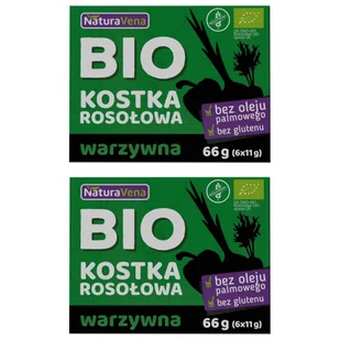 NaturaVena Kostka rosołowa warzywna bezglutenowa Zestaw 2 x 66 g Bio. żywność. Kostka rosołowa warzywna bezglutenowa to doskonały wybór dla osób poszukujących zdrowych i naturalnych dodatków do swoich potraw W zestawie znajdują się dwie kostki o wadze 66 g każda, które stanowią idealne uzupełnienie. . .