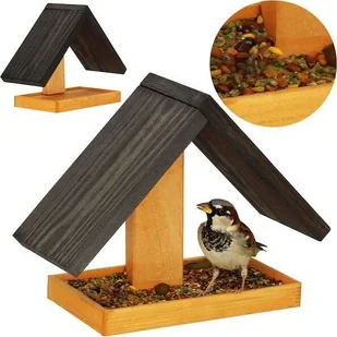 Karmnik dla ptaków drewniany z daszkiem rozm. S domek budka 22,5x31x23 cm brązowo-szary UNIWERSALNY